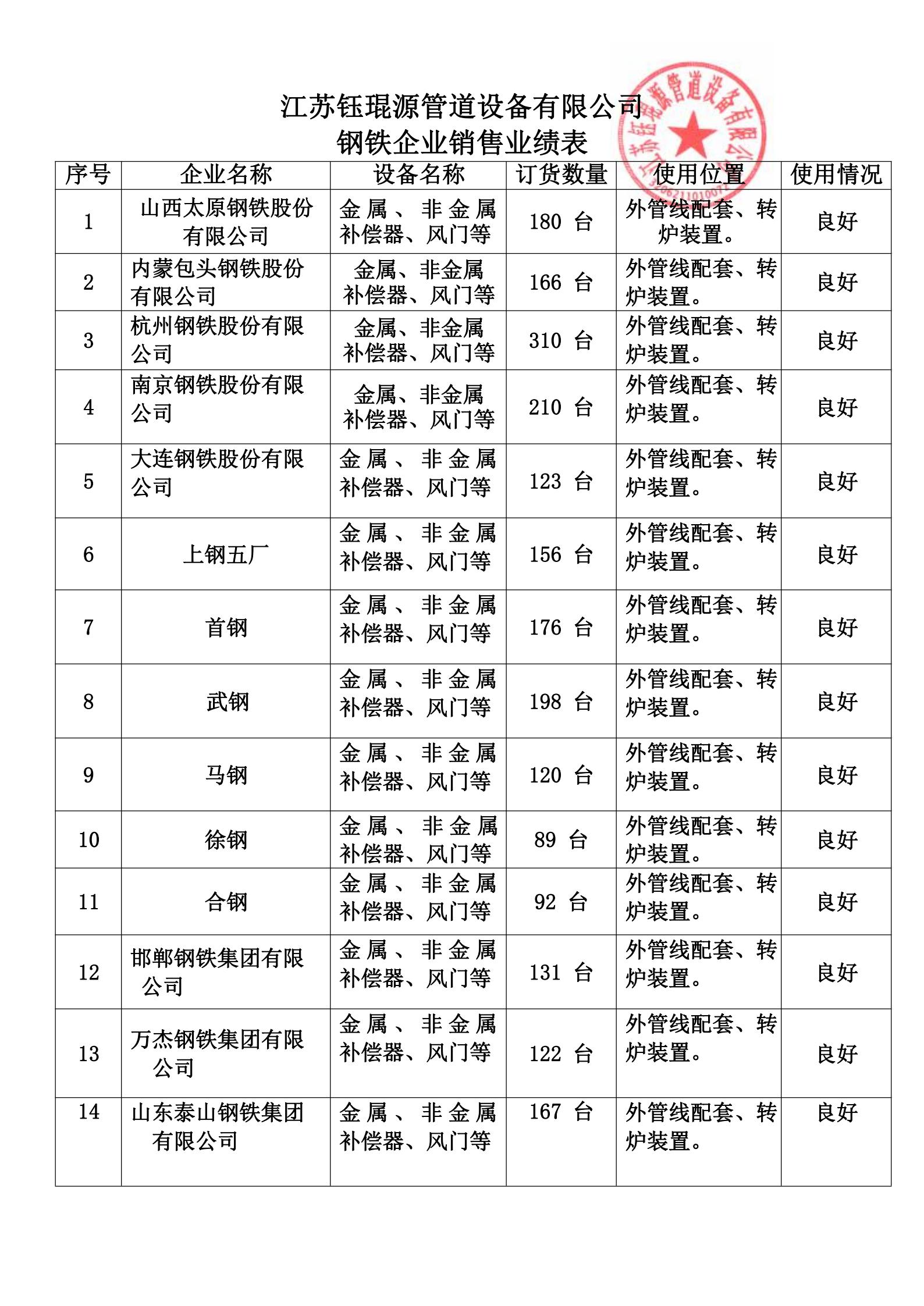 钢铁生产企业销售业绩